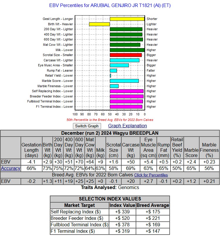 Genjiro JR EBVs from the Australian Wagyu Association site: