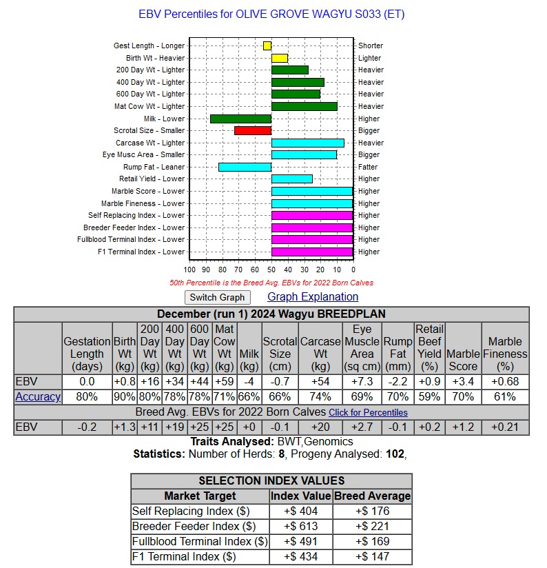 Olive Grove EBVs from the Australian Wagyu Association site: